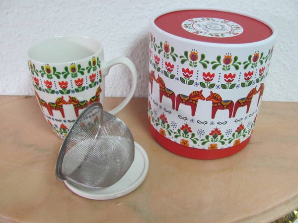 Geschenkset Teebecher mit Deckel und Sieb "Dalarna"